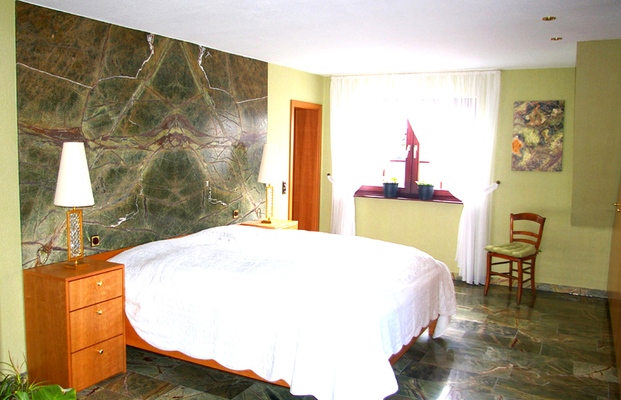 Durch seine einzigartige Farbe und Aderung wirkt jede einzelne Platte wie ein Gemälde.